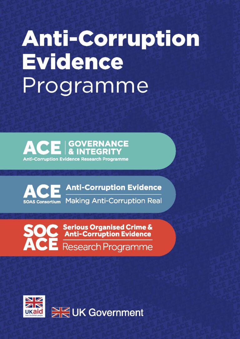 The Anti-Corruption Evidence (ACE) programme delivers practical, policy-relevant research on how to address corruption, illicit financial flows, and serious organised crime. Funded by the UK Foreign, Commonwealth & Development Office (FCDO) through its Research and Evidence Directorate (RED), ACE began in 2015 and has been extended to 2027.