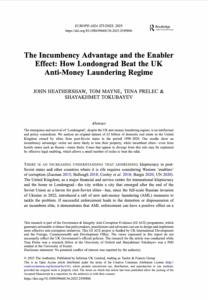 The emergence and survival of ‘Londongrad’, despite the UK anti-money laundering regime, is an intellectual and policy conundrum. We analyse an original dataset of £2 billion of domestic real estate in the United Kingdom owned by elites from post-Soviet states in the period 1998–2020. Our results show an incumbency advantage: exiles are more likely to lose their property, while incumbent elites—even from hostile states such as Russia—retain theirs. Cases that appear to diverge from this rule may be explained by effective legal enabling, which allows a small number of exiles to beat the odds.